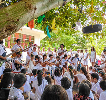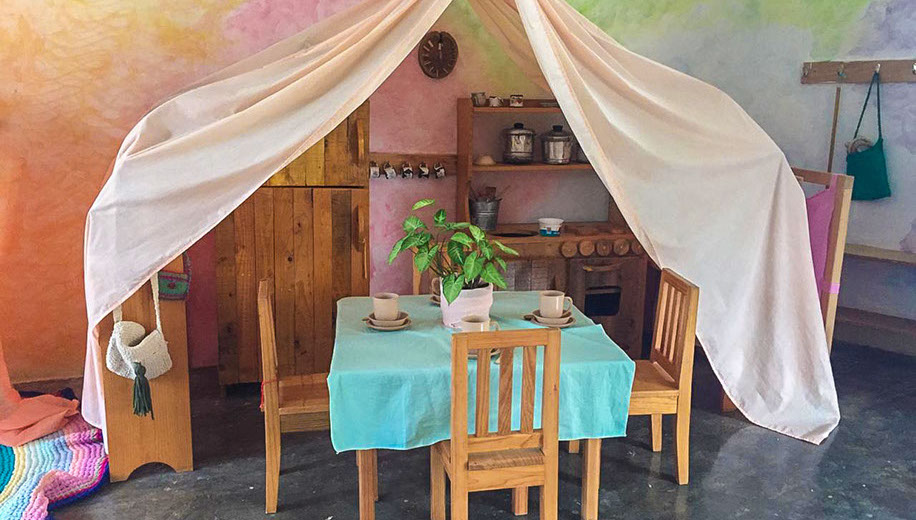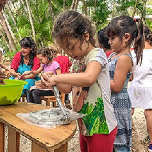 • Los niños participan en talleres de distintos oficios como carpintería, cocina, tejido y jardinería, entre otros.