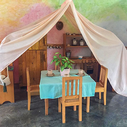 • En las aulas se procura que los elementos estén confeccionados o vinculados con productos naturales, evitando los aparatos tecnológicos o los materiales (objetos y juguetes) de plástico. Se considera indispensable que los niños se familiaricen conlos productos de la naturaleza, así como con actividades que generen contacto con los mismos.