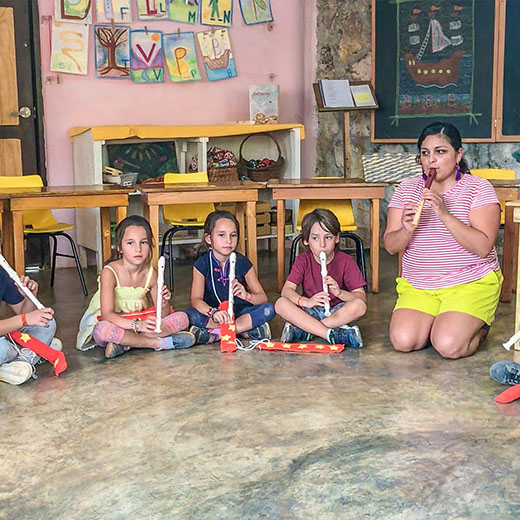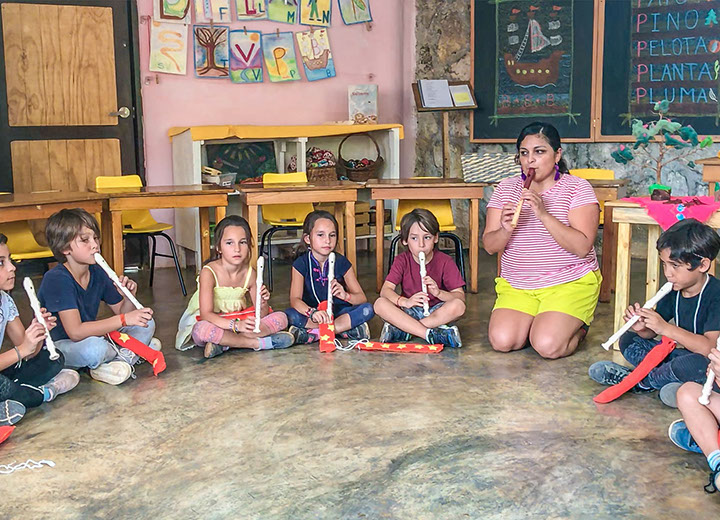 • Se incorpora el arte en variadas expresiones como un medio de aprendizaje en las materias curriculares. El canto, la música, el movimiento y las manualidades no sólo tienen sus clases especiales sino que son recursos utilizados en matemática, lengua o ciencias para la elaboración de conocimientos específicos.