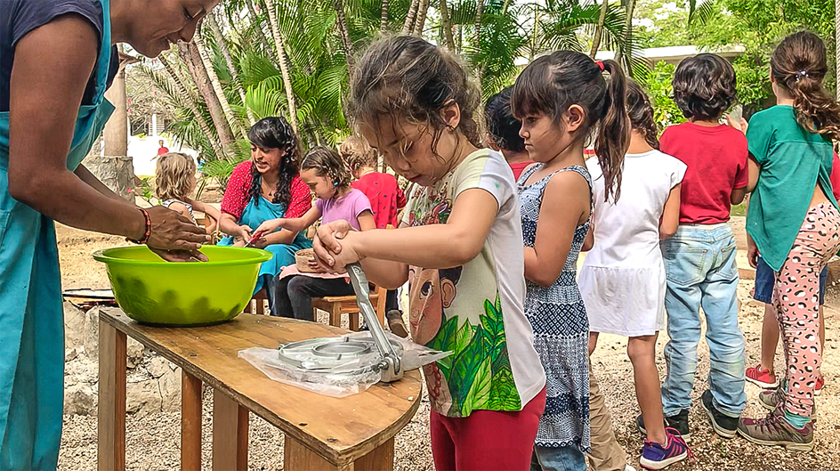 • Los niños participan en talleres de distintos oficios como carpintería, cocina, tejido y jardinería, entre otros.